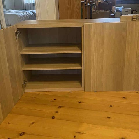 Bänken är i fint skick men finns repor inuti skåpet på hyllan men stör ju inte om man har luckorna stängda.