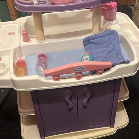 Rosa bärsele, potta och napp till dockor.