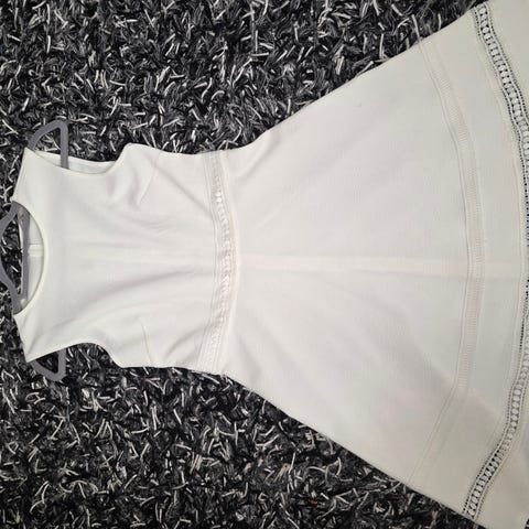Vit klänning med spets utsida och inne kjol med rosette baktill