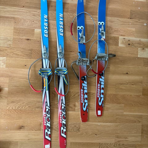 Carrons Tecno PRO med stavar. Skidorna är av standardstorlek och designade för vinterbruk. Material och färg är anpassade för skidåkning på snö.