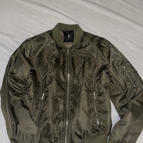 Vero Moda Bomber jacka i storlek S för kvinnor. Jackan är grön och tillverkad i polyester. Den har en kortare design med dragkedja och ribbade muddar i ärmslut och nederkant.