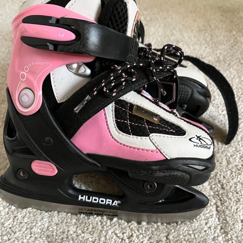 Replay ishockeyskridskor för barn i storlek 27. Skridskorna är svart och vita och avsedda för ishockey.