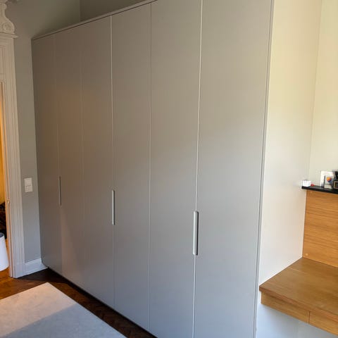 Säljer 2st Marbodal garderober/högskåp med inredning som hyllplan, stång samt överskåp. Öppnas genom att man trycker på dörren. De ingick i vår bostadsrätt när vi flyttade in för 8 månader sedan. Knappt använt garderoberna - vilket är förklaringen till varför vi nu säljer dem. Måtten för varje garderob INKLUSIVE överskåp är 60x60x240cm.