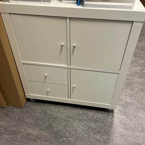 Vit hurts med 3 lådor, bredd 44 cm, djup 50 cm, höjd 60 cm.