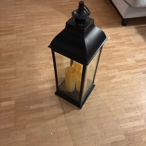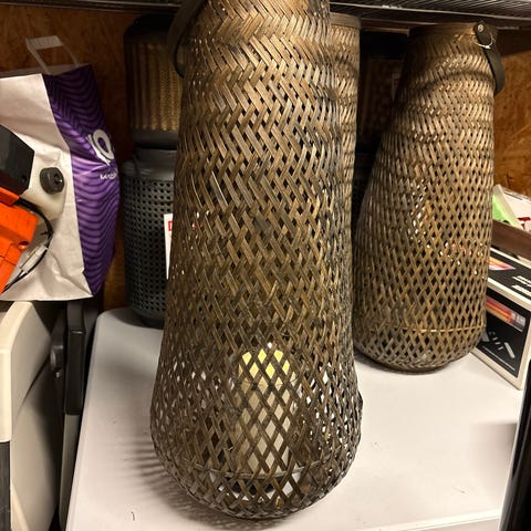 Stor ljuslykta i svartmålad metall säljes. Lyktan är oanvänd och 67 cm hög. Utsidan har viss påverkan av att ha stått förvarad, men inga större skador eller märken. Fler bilder kan skickas vid intresse.
