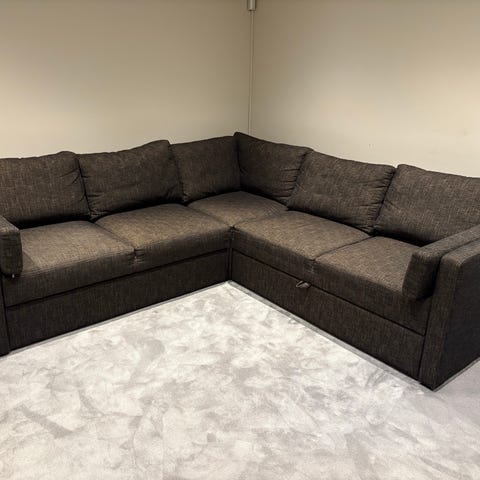 Säljer den fina bäddsoffa från Mio (köpt 2014, nypris var ca 9000 kr). Välanvänt men funkar mycket fint. Säljer denna för att ersätta med något mindre kompakta modell. Mått: 250 cm längd, 210 cm bredd, 85 cm djup. Nedmonteras till 3 delar (långa sidan, hörndelen, korta sidan) + tillhörande soffkuddar. Har några fläckar (se bilder). Kan ej skickas, endast upphämtning