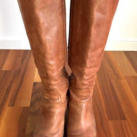 Klackhöjd 6cm, stretchiga sidor för enkel på- avtagning. Lite skavmärke längst upp på klackar.