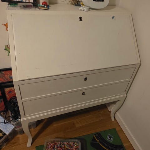 Gratis gammal sliten byrå i trä, se bilder. Har målats svart. Hämtas så fort som möjligt, nära Monbijouskolan. Hiss finns.