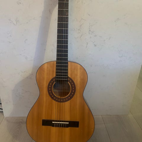Gypsy Rose akustisk gitarr i rosa färg. Gitarren har en cutaway-design och levereras med matchande fodral. Den är lämplig för olika spelstilar och användare. Köpt begagnad från operasångerskan Madeleine Hilleard som vann talang 2018. Säljer pågrund utav att den inte kommer till användning.