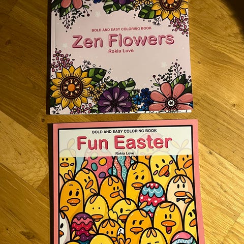 En samling målarböcker med olika teman inklusive mandala, djur och avkoppling. Böckerna innehåller detaljerade illustrationer i olika stilar och är avsedda för färgläggning som en lugnande och kreativ aktivitet