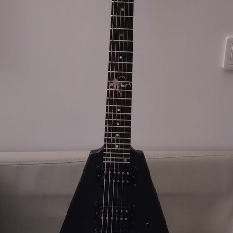 Rolig att låta någon hålla den. En riktig metall gitarr