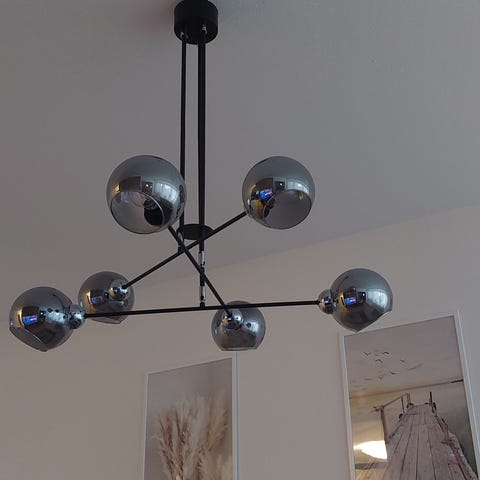 Inköpt på Ellos. Malou takskärm 50 cm. Inkluderat takupphänge bas 1.2 meter i svart. Använd endast under styling och försäljning av hus. Nypris för endast takskärm 1124kr Mitt pris för allt 600kr