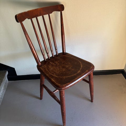 Äldre ommålade stolar. Dom är stabila men på en av stolarna behöver pinnarna limmas i ryggstödet. Flera små ytliga skavmärken. Kan kanske målas om igen eller bevaras som dom är för en lite ruffare stil. 500 kr för alla 4.