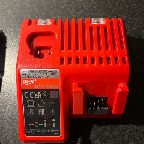 Säljes laddare och batteri till milwaukee C18/3.0 Ah/54,0 wh 18V
