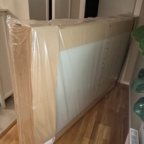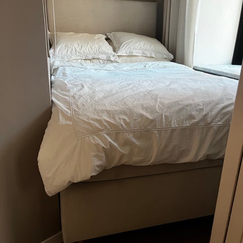 Sängen har agerat extrasäng i gästrum under en väldigt kort tid och är i nyskick.