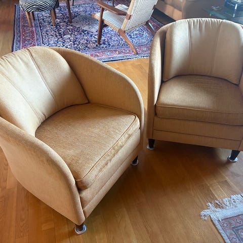 Säljer en klassisk och mycket bekväm Patronen-fåtölj med tillhörande fotpall från Bröderna Andersson.