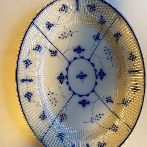 Assietter från Royal Copenhagen i serien blue fluted half lace/musselmalet. 22 cm i diameter. Mycket fint skick. Säljer 6 stycken för 1300 kr styck (nypris 2000 kr) eller alla 6 för totalt 7500. Hämtas på Kungsholmen.