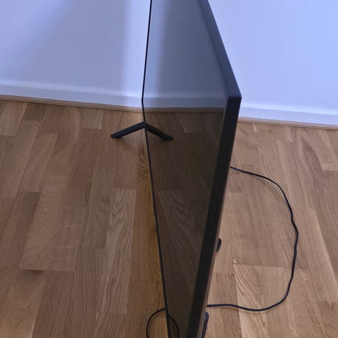 Viss backlight bleed kan synas i mörka scener (vanligt för modellen/ålder), inget som påverkar funktionen i normal användning.
