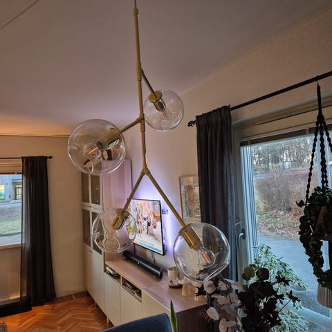Superfin taklampa I vit metall. Diameter längst ner 45 cm höjd ca 45 cm upp till början på sladden.