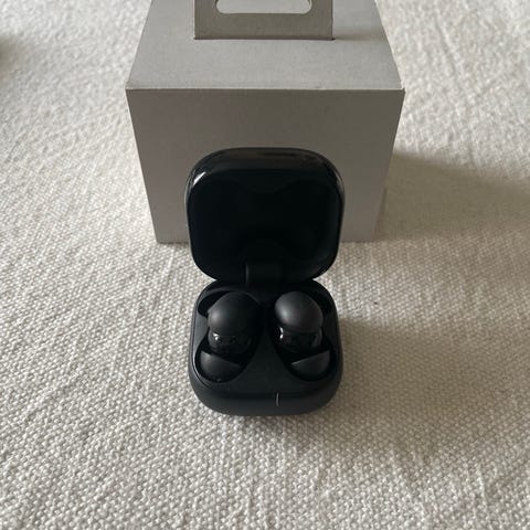Trådlösa hörlurar med pekskärm på utsidan för styrning av musik och samtal.