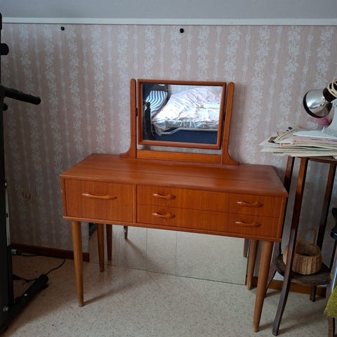 Vit sminkbord med spegel och lådor