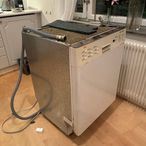Diskmaskin med vit front. Passar för inbyggnad under köksbänk. Lätt defekt, men kan säkert lösas av den händige, ger error på alla program utom snabbprogrammet! Snabbprogrammet fungerar!
