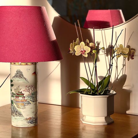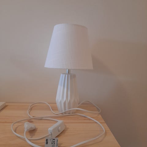 Lampfoten är 58 cm hög och lampskärmen är 35 cm och har ett E27 ringfäste.