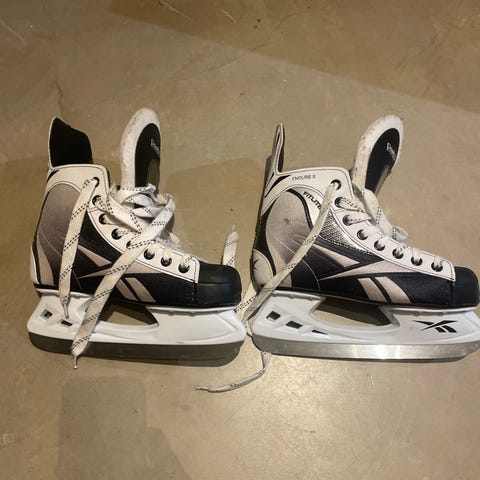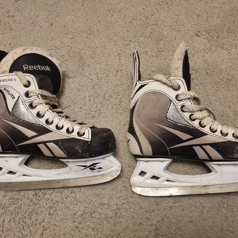 Reebok Ishockeyskridskor för barn i storlek 31. Skridskorna är avsedda för ishockey men passar lika väl till lek på isen och har en design som passar yngre användare.