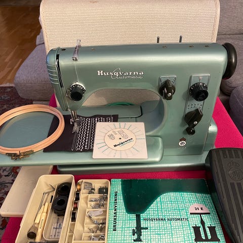 Husqvarna Viking H-Class E10. Enkel men funktionell symaskin, justerbart pressarfottryck. Grundläggande nyttosömmar, elastiska sömmar, dekorsömmar. Kommer med extra nålar och fotpedal. Nypris 2645 SEK. Måttligt använd, ca 10-20 ggr. Inköpt för drygt 1 år sedan.