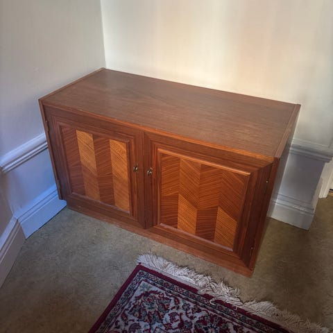 Fin mångsidig möbel. Har använts som TV-bänk. Köptes begagnad för 1 år sedan för 3000. Säljes pga flytt. Ena knoppen är fastlimmad av förra ägaren, märks ej annat än mycket nära (se bild).