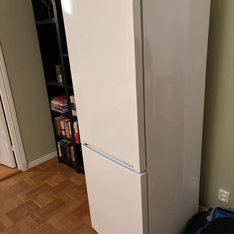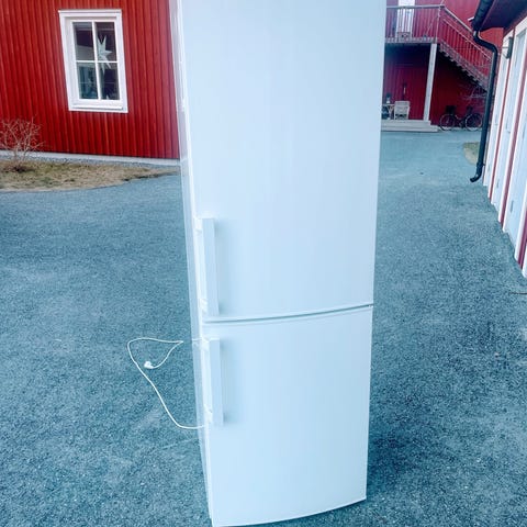 IKEA Uppkalla/Påkalla kombiskåp med kyl- och frysfack. Produkten inkluderar monteringsanvisning och tillbehör för installation.