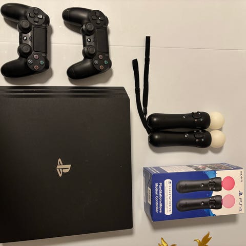 Sony PlayStation Move Motion Controller set med två handkontroller utrustade med rörelsesensorer och ljusbollar för interaktiv spelkontroll på PlayStation 4.