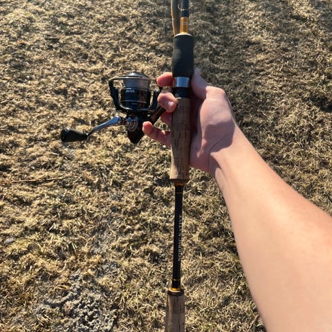 Den är i bra skick den har tänken på salt vatten på den som syns men påverkar inte hur den används plus så can du använda den direkt när du får den eftersom du får en hook/lure plus line. Jag kommer inte skicka den man får hämta eller så kommer jag till dig om du bor i närheten av buss