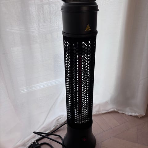 Oljefylld elementvärmare i vit färg med flera värmesektioner och bärhandtag. Utrustad med strömkabel och termostat för justerbar värme. Passar för uppvärmning av mindre till medelstora rum.