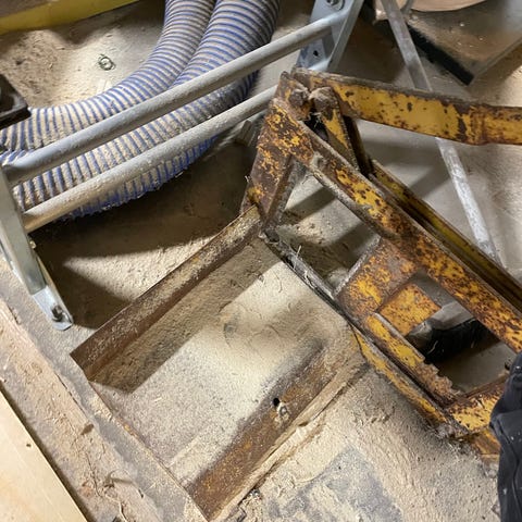 Pall med diverse byggmaskiner, Pall med stroppar och varning
