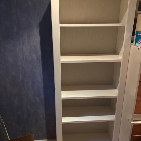 Bokhylla Billund från Jysk, några skador i bakre träskivan (se bild)