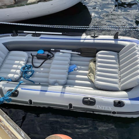 Rejäl gummibåt som tyvärr blev för stor för mitt ändamål. Endast använd under en härlig långtur 🌞 Förberedd för fiskespö, båtmotor osv. Nerpackad i väskan. All info i långa texten här under: