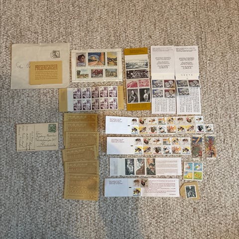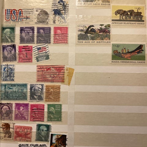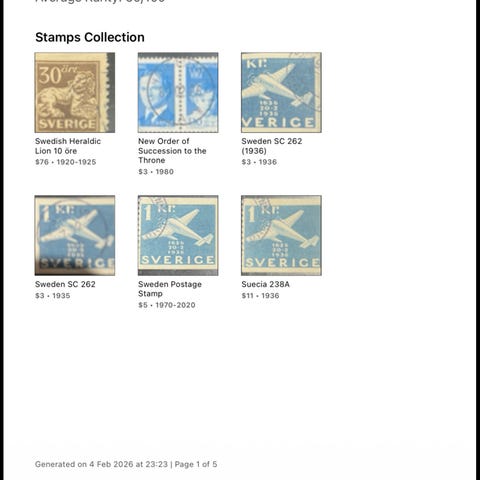 Frimärken i varierande skick. Albumet består av totalt 32 sidor.