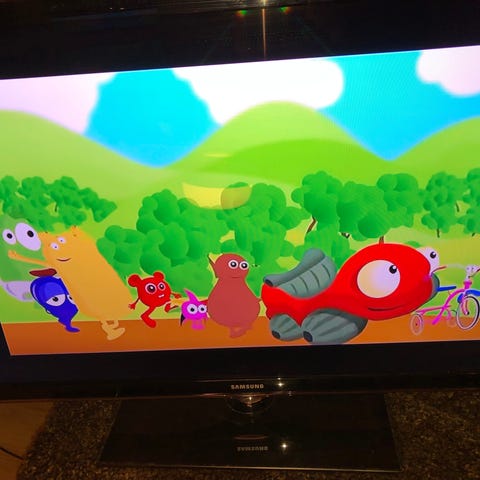 Det vänstra tv stativet har inga skruvar därav det låga priset. Men den står upp ändå.