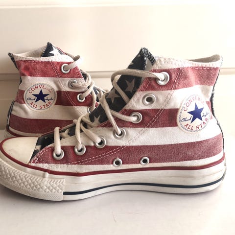 Converse sneakers i storlek 36,5. Skorna är vita och tillverkade i textilmaterial. Klassisk modell med hög design och gummisula. Knappt använda och i fint skick.