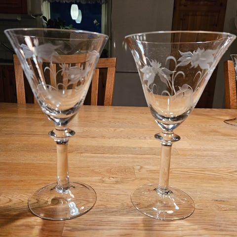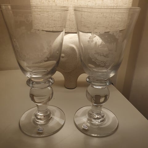 22 eleganta vinglas med tunn fot och stilren etsad dekor upptill. Klara glas med vacker form som passar till många tillfällen och stilar. Vinglasens lätta känsla och tunna kant gör dem både praktiska och snygga på bordet.