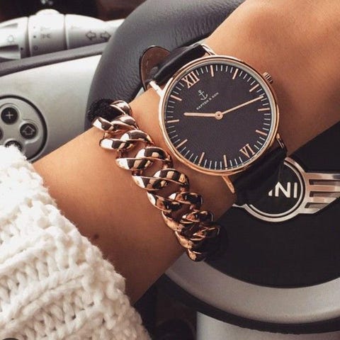 Candino Damklocka guldfärgad med blå urtavla