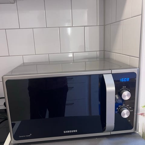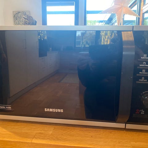 Electrolux mikrovågsugn i stål och svart. Utrustad med standardfunktioner för uppvärmning och tillagning av mat.