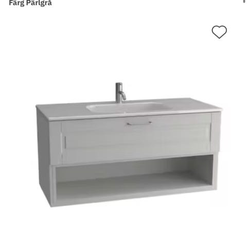 Ouppackat underskåp VAXHOLM till badrum. Vit matt med grå stenbänkskiva och med vitt porslinstvättställ. Säljes tillsammans med Gustavsberg ESTETIC blandare kromfärgad i hög modell (ouppackad).