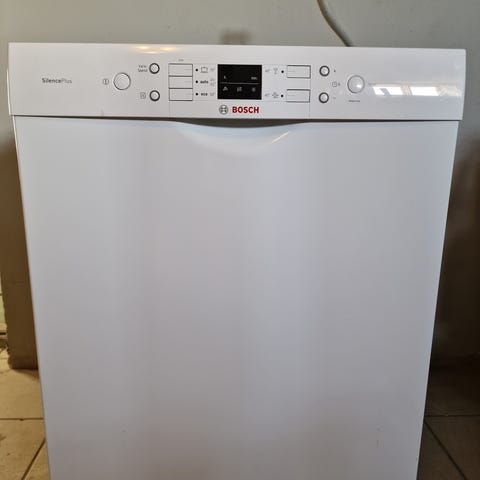 Bosch underbyggd diskmaskin. Vit färg, designad för att byggas in under köksbänk. Passar för installation i kök med standardmått.