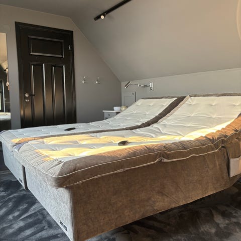 Fantastisk sköna sängar. 2 st ställbara 90 cm-sängar. Nypris ca 145 000 kr. Går att ställa i flera lägen. Lång garanti och reservdelar finns att köpa. Sängen är nyligen kemtvättad så väldigt fräsch. Dosorna är lite skadade men fungerar utmärkt ändå. (Nya finns att köpa)