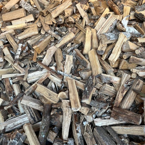 Veden säljs i stjälpt mått, dvs veden ligger huller om buller.