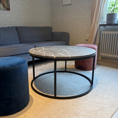 Säljer två soffbord i runt beige äkta marmor. Borden är i nyskick och väldigt stil rena. Säljes pågrund av nytt soffbord jag fått i julklapp.