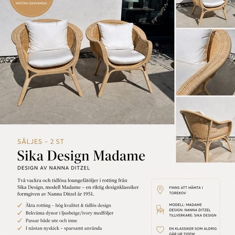 Säljer min fina rottingsoffa från House Doctor pga flytt, ca 1 år gammal. Nypris 8799kr.