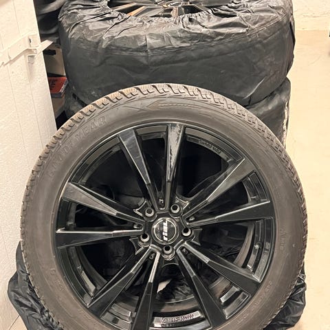 Mycket fina odubbade vinterhjul med kvalitetsdäck, Goodyear ultragrip ice med ca. 9mm mönsterdjup på svarta CMS fälgar. Fungerande tpms sensorer sitter i hjulen.